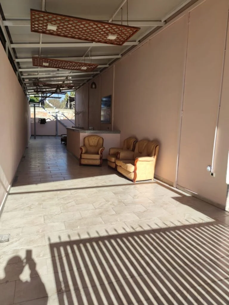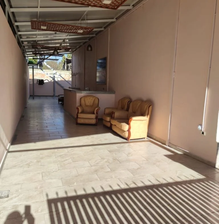 Shtëpia ka 2 dhoma gjumi dhe ka një sipërfaqe prej 150 m², me oborre dhe hapësira parkimi.Salla dasmave është 500 m² dhe është i mobiluar plotësisht për organizimin e ngjarjeve familjare. Ndodhet në qendër të Xhafzotaj, në një zonë shumë të frekuentuar dhe me akses të lehtë.