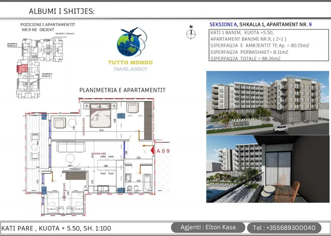 1+1 and 2+1 apartments for sale in the area of Golem in Durres. The apartment is located in a building complex under construction. we have 1+1 structures from the 1st floor to the 6th floor. We also have 2+1 structures from the 2nd floor to the 6th floor. The apartments have an elevator as well as many facilities such as market, pharmacy, playground, etc. The palace is located 100 meters from the sea.